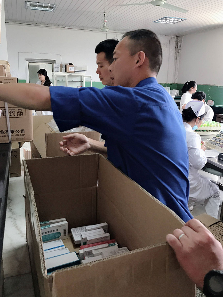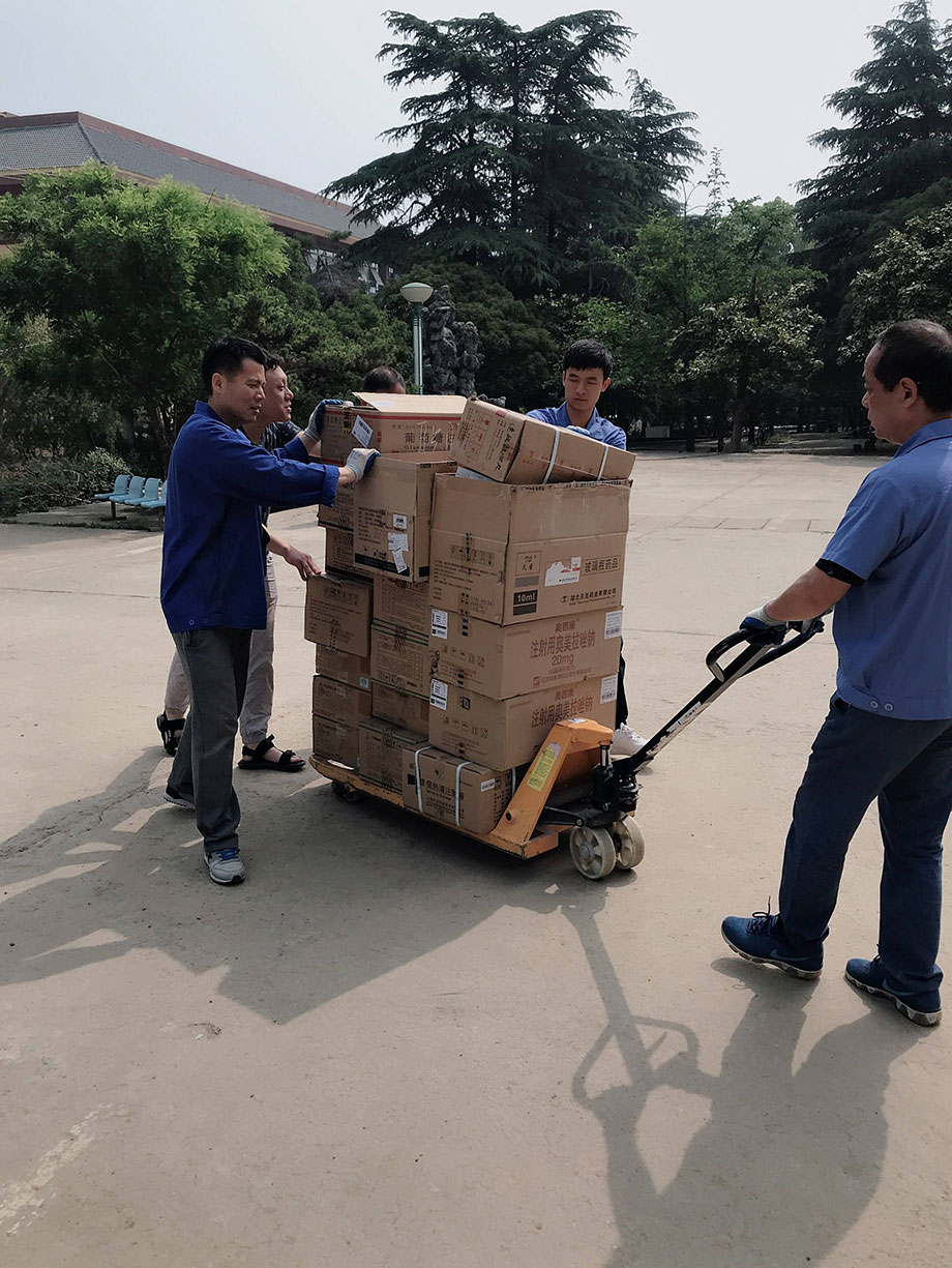 每次藥品全部運送到藥材科以后,大家還要和對方老師及時核對藥品,確保藥品的質量、數量、效期、產地、品名、規(guī)格等,確認沒有問題才算是配送成功,看著同事們汗流浹背的樣子,真心地為大家點個贊!